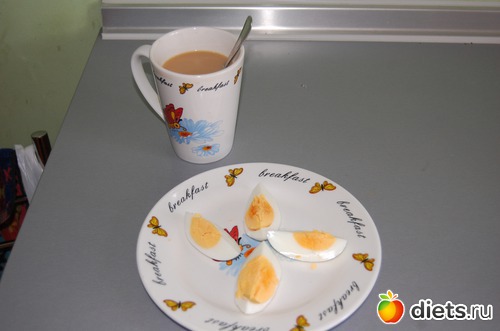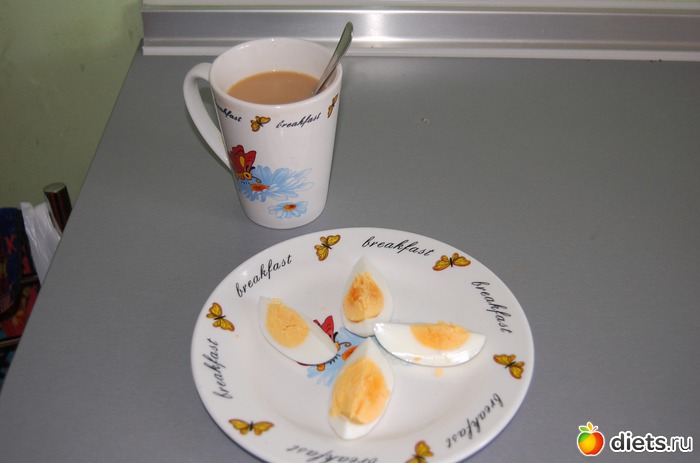 На обед положено сьесть овощной суп и куриную грудку. А на ужин банку тунца и ломтик черного хлеба. Решила пропустить и обед и ужин