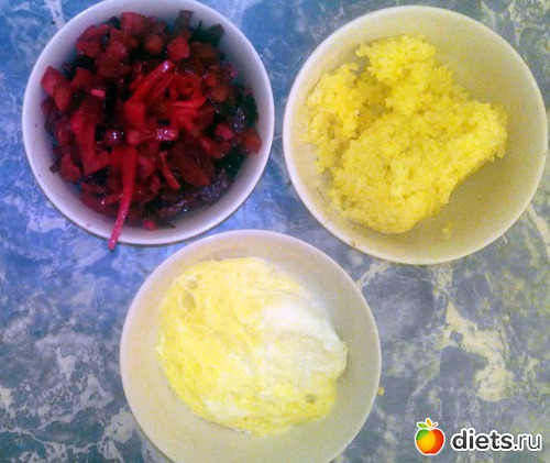 Винегрет, пшенная каша с 10 граммами сливочного масла, но без соли, и яйцо из микроволновки.