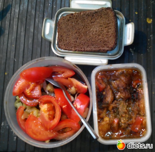 Плюс помидорка с сельдереем и кусочек хлеба.
