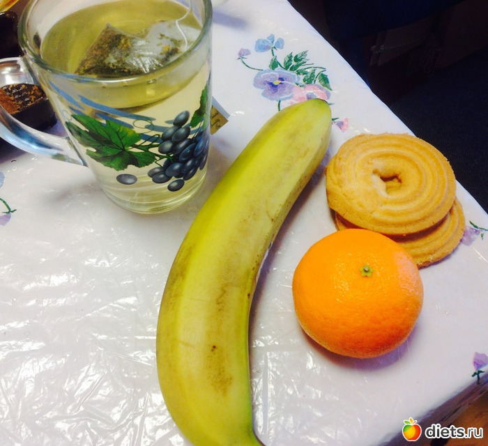 И последний перекус был в виде банана, мандарина и 2 печенюшек.
