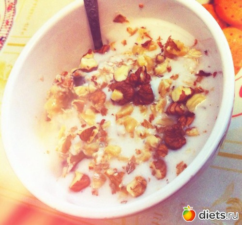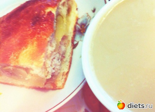 Ленивая каша с бананом и черносливом, утром добавила немного орехов и йогурта ВАЛИО(его увидите в ужине)+пирог с картошкой и рыбой(ждал меня 2 дня)+кофемолоко