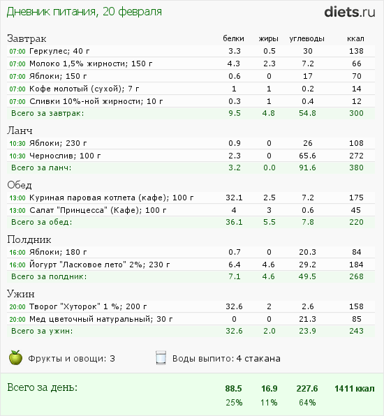 Вот мое питания вчера