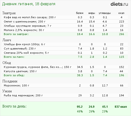 Вот смотрю на последние два дня и понимаю, что соотношение БЖУ неграмотное у меня