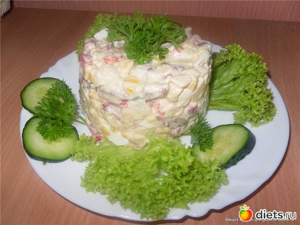 Смешиваем все ингредиенты, добавляем майонез. Салат готов! Украшаем на свой вкус.