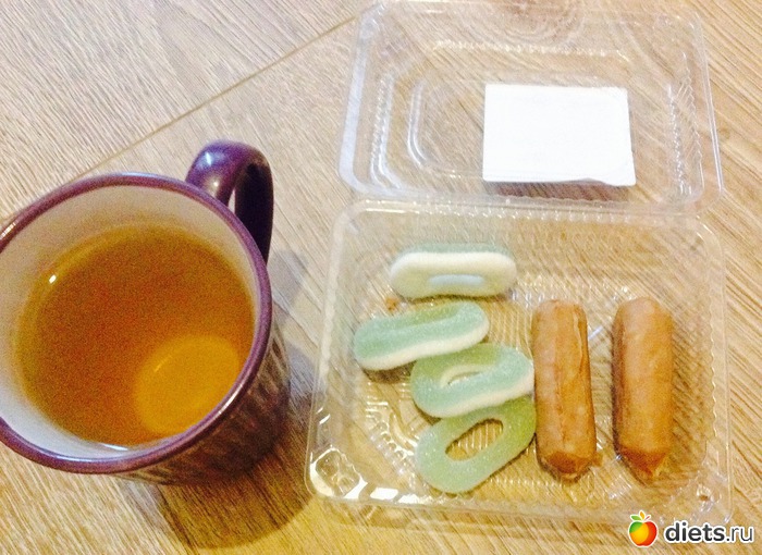 Зеленый чай с 4 мармеладками и 2 сливочными колбасками