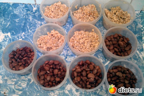 Пока суть, да дело разложил по баночкам овсянку и фасоль.