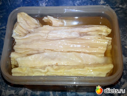 Вот как выглядит соевая спаржа после того как отмокнет.