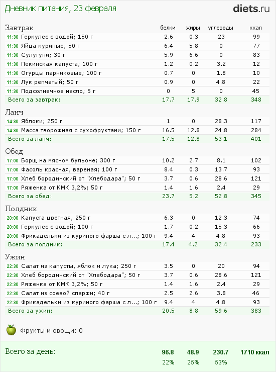 А другие диетологи говорят, что при физическом труде некоторое количество углеводов вечером не помешает. Пусть они говорят, что хотят! Надо на себя ориентироваться!
