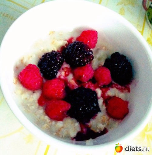 Каша 5 злаков на пару+йогурт +малина+ежевика+1 пасила+грецкие орехи+кофемолоко