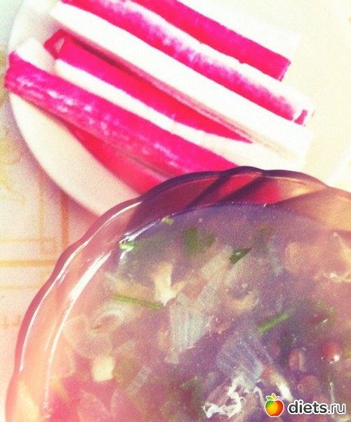 Суп чечевичный+3 крабовые палочки+бородинский с малом+сыр моцарелла+яблоко