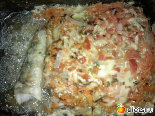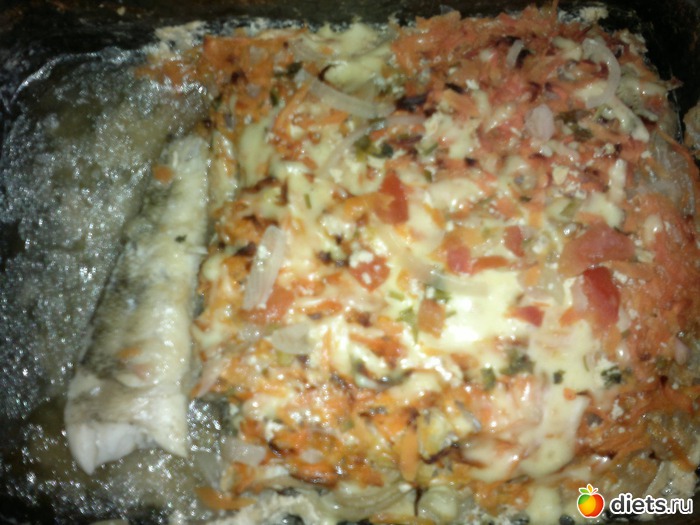 Сделала рыбку в духовке с молоком, помидорами, луком и морковью