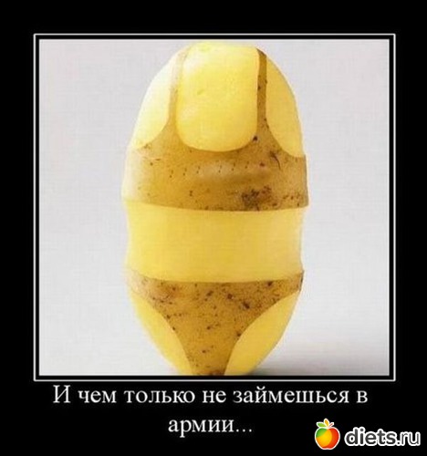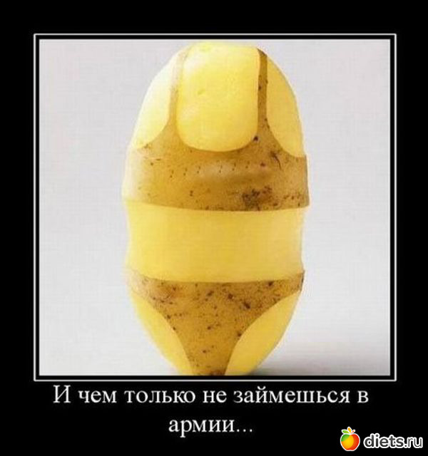 Прапор: "Кто поедет на картошку?" Два бойца делают шаг вперёд. Прапор: "Молодцы орлы, остальные пойдут пешком!"