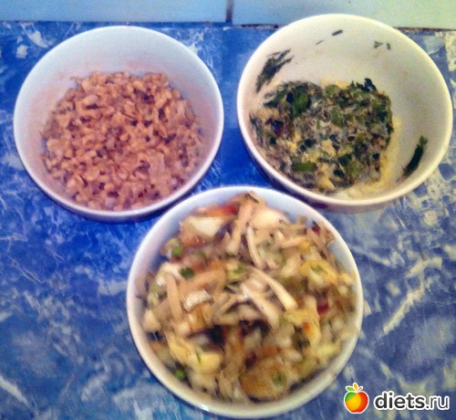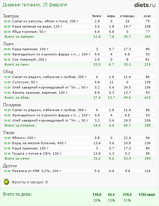 Еще раз борщ с таким малым количеством ряженки, что я даже ее считать не стал. Пшенная каша и тушеная куриная грудка с луком.