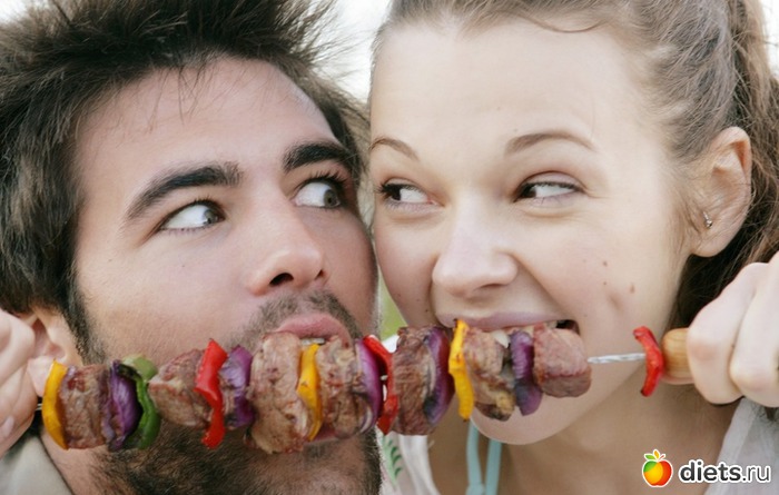 Очень рекомендуется есть шашлык! На самом деле мясо, приготовленное на костре самое низкокалорийное! Так что шашлык, можно сказать, диетический продукт!
