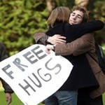 однажды я попала именно в такой флеш-моб - шла толпа молодежи по улице с плакатами - "обниму бесплатно". я разулыбалась, они признали во мне "своего" и я наверное минут 15 обнималась со всей толпой, получив таакой заряд позитива)