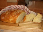 После расстойки тестовую заготовку смазываем кисточкой слегка взбитым яйцом, посыпаем кунжутом, (либо любыми другими семечками и добавками, либо оставляем без посыпки), и ставим выпекаться в нагретую духовку. Время выпечки приблизительно 35-45 минут.