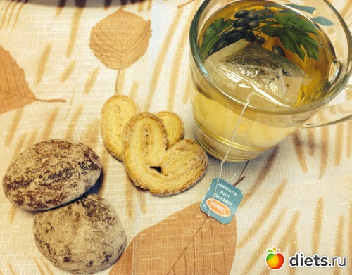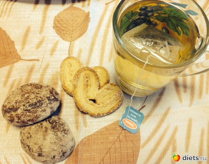 На работе перекусила в 11.00 зеленым чаем с черникой, 2 пряниками и 2 ушками!