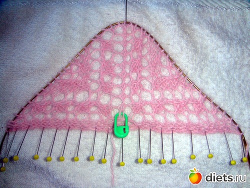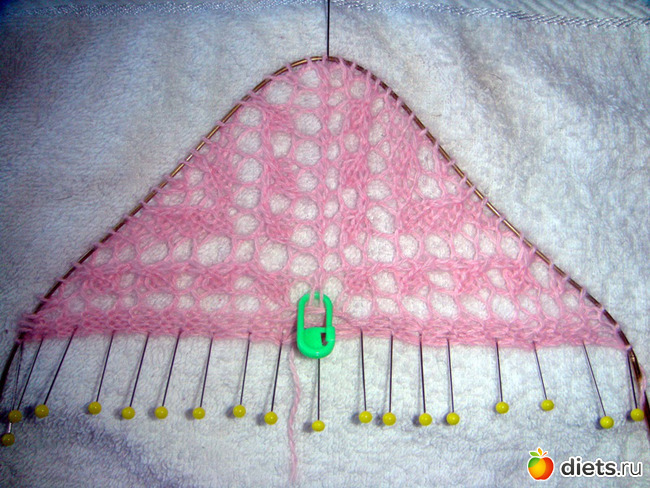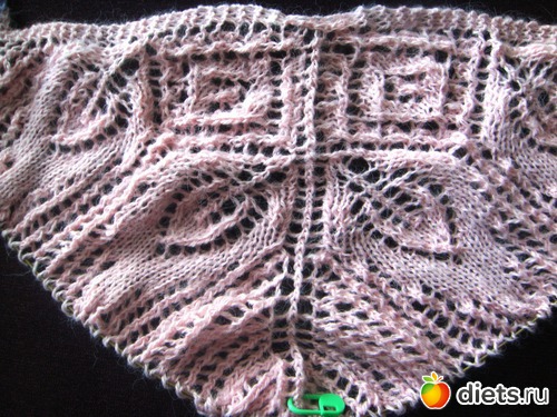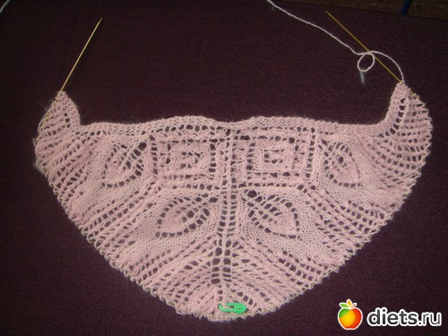 А я вот сейчас вяжу спицевые шали, буквально не отрываясь. Вот только что 65 рядов связала этой розовенькой пушистой. Жду от девочек с "Дариевны" следующую часть схемы.