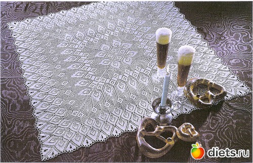 Свет, что касается изящности спицевых шалей, можно вспомнить "паутинки". Или посмотреть на салфетки и скатерти спицами (на основе этих схем вяжут полукруглые и треугольные шали).