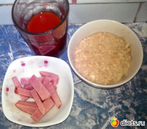 Томатный сок. Геркулес на воде. Окорок "Воронежский".