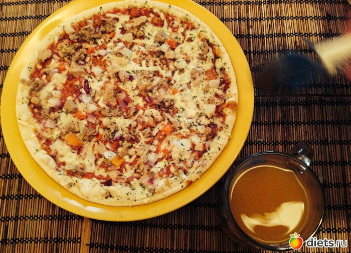 Напомню самым щепетильным - в половине пиццы 300 ккал. )