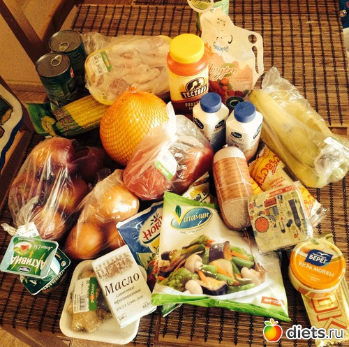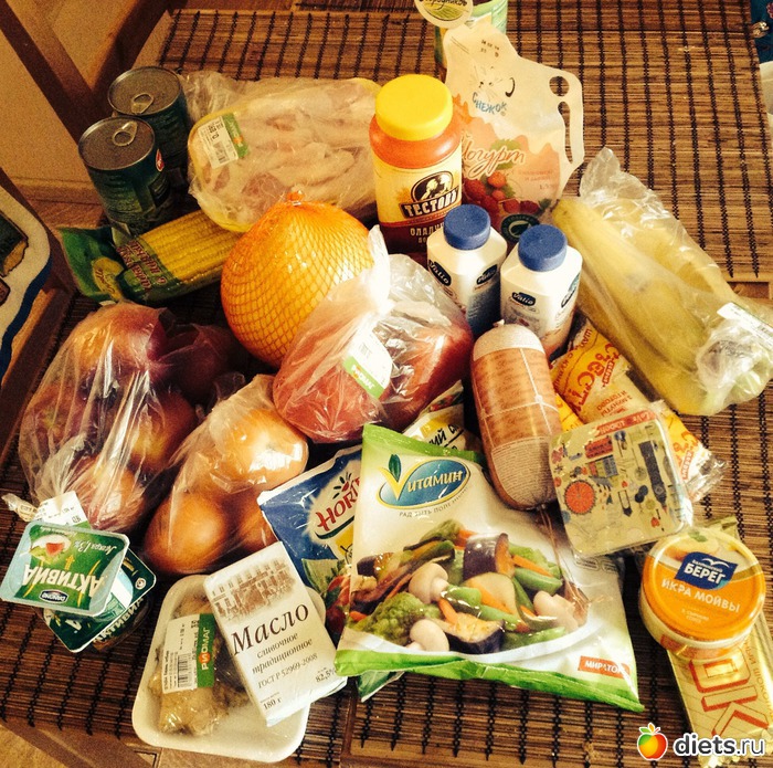Накупила, как всегда, овощей, фруктов, курицы. Решила попробовать в этот раз горчичное масло (спасибо Верочке)), нашла какую-то суперулегченную Активию (правда, остался только один йогурт, видимо, за 3 мес до лета всех резко начал волновать вопрос фигуры)), взяли и вредностей немного - 2 плитки молочного шоколада (скидка же!)), какое-то специальное тесто для оладушек - решила, как-нибудь попробую сделать и такие, икру мойвы в сливочно-сырном соусе (обожаю эту серию!!).