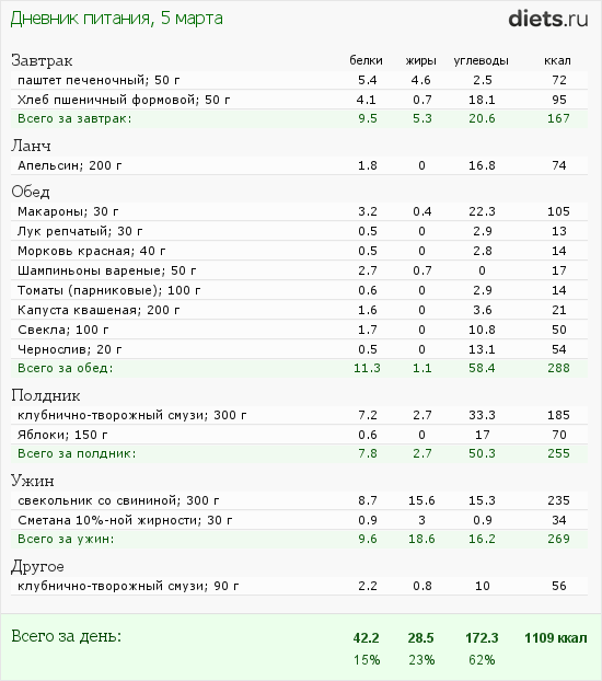 аппетит возвращается, но на сладкое пока не тянет. Из потерянных на водном дне вернулось 400г. Сегодня опять не добрала норму по каллориям и по белку, зато жиров у меня мало и это радует