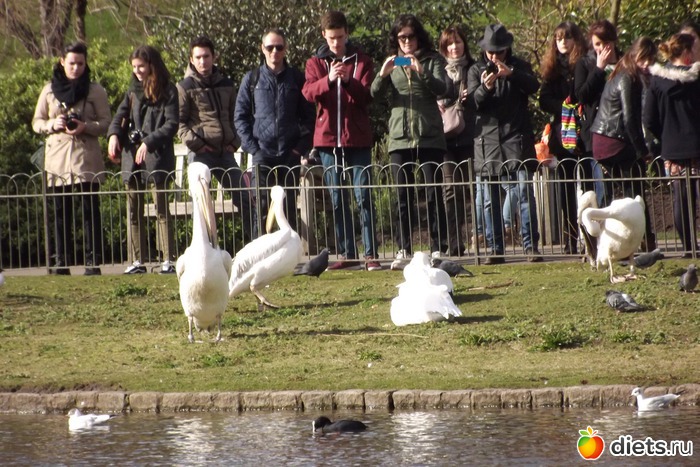 Вообще, Сент-Джеймс парк известен своим птичником. Согласно большим стендам, здесь проживает более 30 видов птиц. Но одно дело прочитать, другое - увидеть!