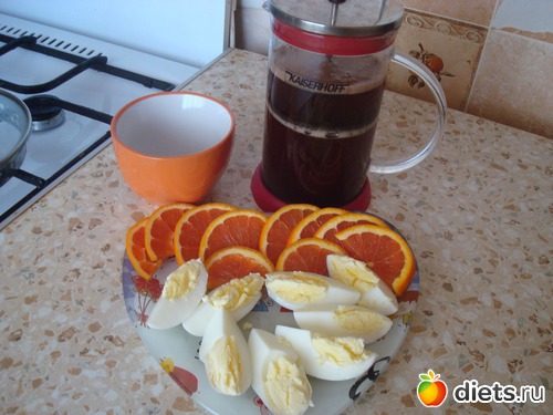 Завтрак яйца, апельсин, кофе.. и так как с утра запара была. завтрак в 12 часов только был
