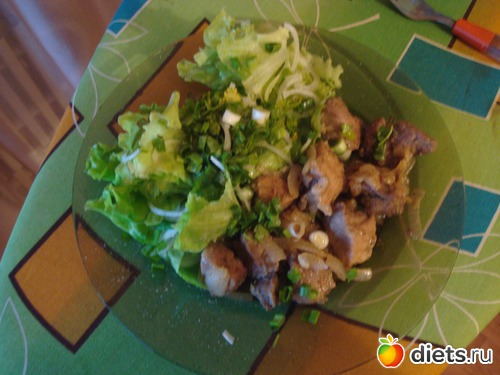 ужин, салат и постная свинина тушеная с луком ( горчицей и семенами кинзы )