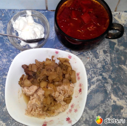 Борщ. Геркулес на воде. Печенка с луком из микроволновки. И немного самодельного греческого йогурта. Не буду повторять как его делать. В коммах к предыдущим я уже несколько раз рассказывал об этом. Захотите - найдете!