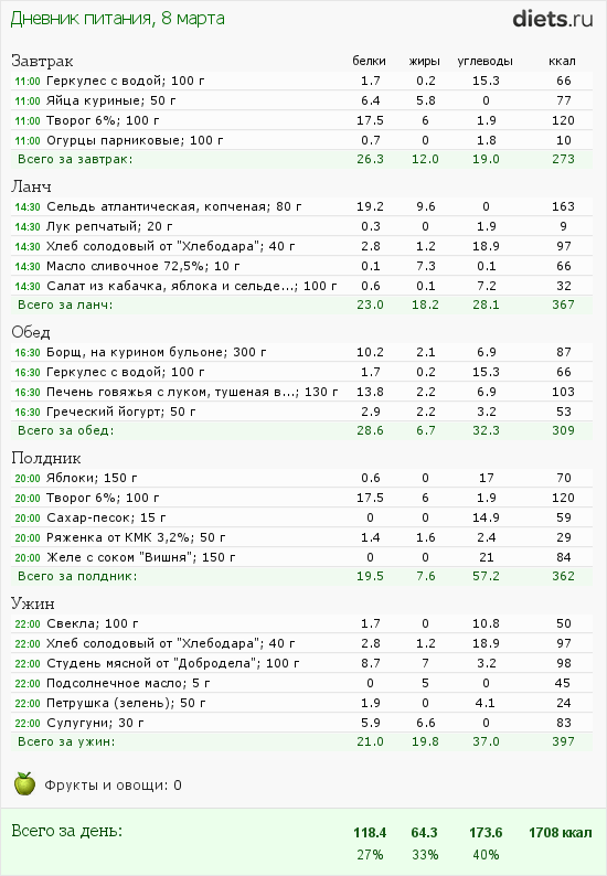 И вот что интересно! Калорийность второго завтрака оказалась даже выше чем обеда, но после него я совершенно спокойно три с половиной часа до полдника.