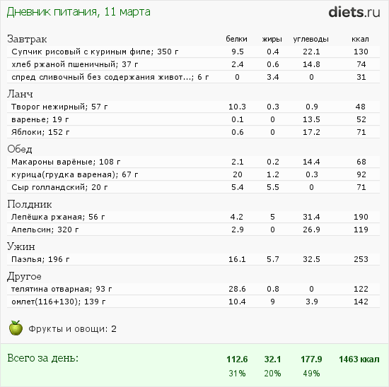 Рацион у тебя прям шикарный сегодня, четко вписалась