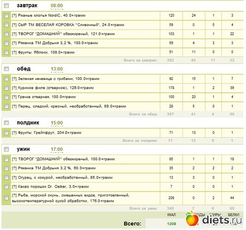 Калорийность продуктов