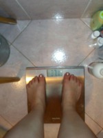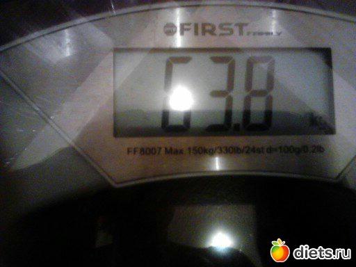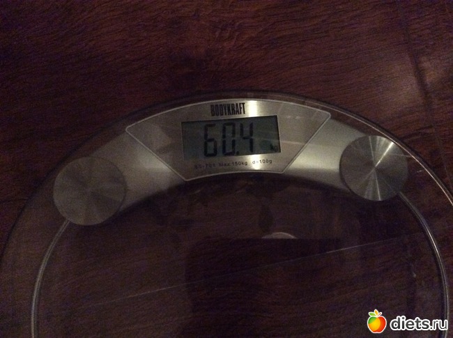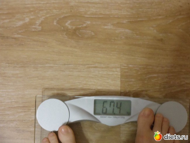 Мой ленивый пуз сегодня ровно 64 кг. Фотку могу вставить только завтра, поверьте на слово