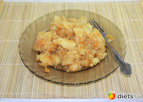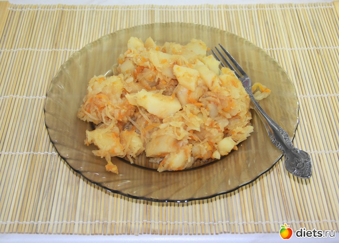 Обед и ужин прозаичнее - тушеная картошка с квашеной капустой