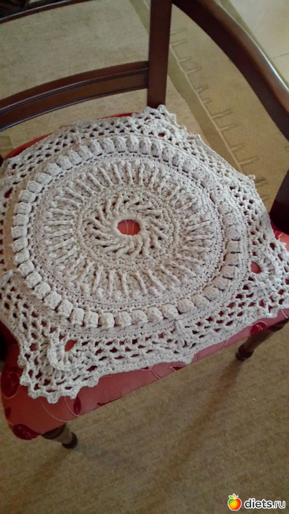 Связала коврик - седушку на стул. Я сама очень довольна, получилось эффектно. Вязала из толстого хб шнура. Ушло чуть больше 200 метров. Мечтаю связать еще коврик к кровати, побольше, но надо поискать шнур немношко пожестче. Этот очень мягкий. Вязала два вечера. да и то потому что распускала половину, так как первый вариант оказался маловат, пришлось увеличивать. Читать полностью