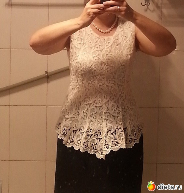 Может, конечно фото неудачное...но сочетание этого (нежнейшего!) топа и этой черной юбки (она, наверняка, еще и длинная?) - не лучшее, мягко говоря (оно задает "бабкинский" стиль).