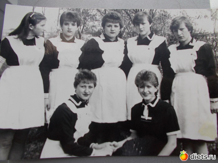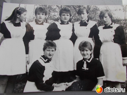 девочки выпускного, десятого класса...(я выделилась...в черном переднике)))))) Позади школа, детство и беззаботные времена. Впереди неизвестность и взрослая жизнь. Но нам тогда все казалось нипочем, все по плечу...
