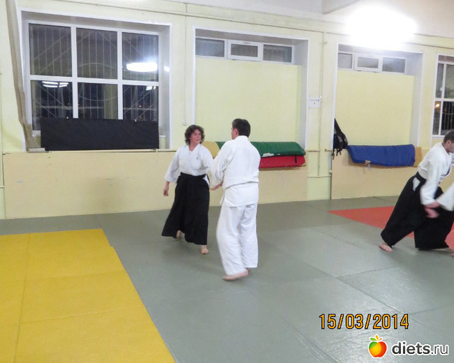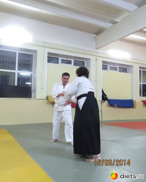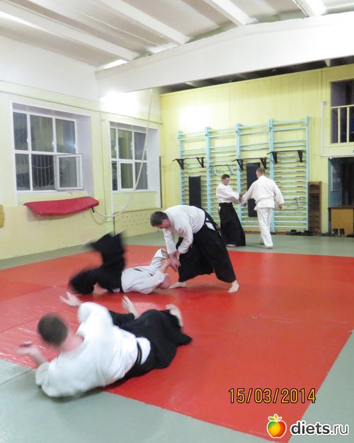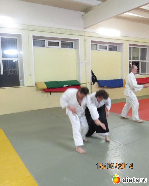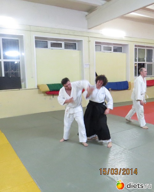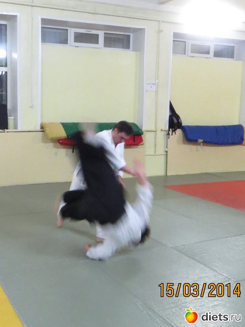 Фотки прямо по порядку - вот я за руку схватила - и на следующей полетела. Потом наоборот. Ну и мужичок еще без хакама, то есть вроде как не дан еще. Хотя работает нормально.