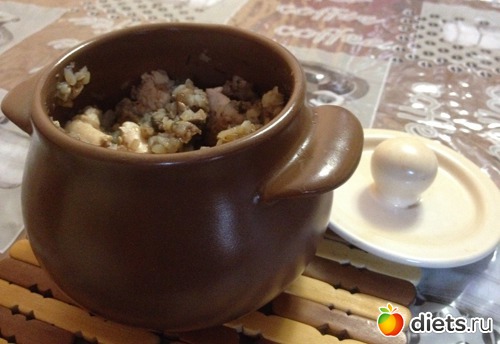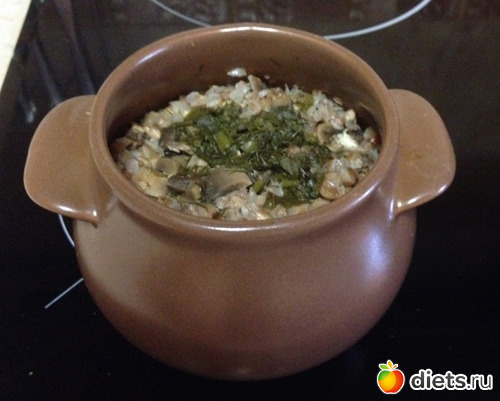 На выходных готовила каша гречневую с грибами и мясом. Выбрала способ приготовления в горшочках - не только из-за особого вкуса каши с духовки, но и для удобства порционной еды при подсчете калорий.