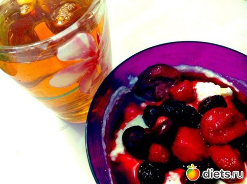 70 грамм творога+йогурт с ягодами+чай