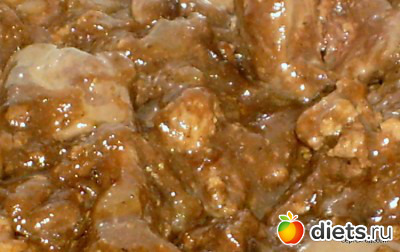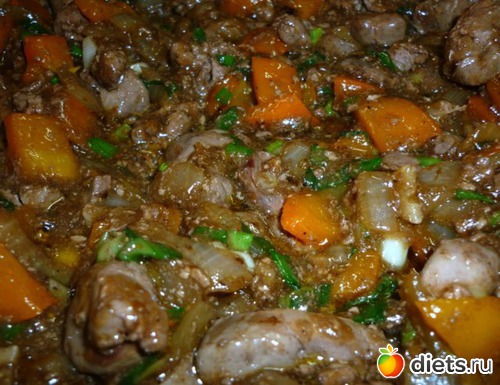 Важно — обжаривать до тех пор, пока кусочки печени не поменяли цвет ( прихватились ) со всех сторон. Больше не стоит — пересушите печень, будет не вкусно. Вынули печень на отдельную тарелку.