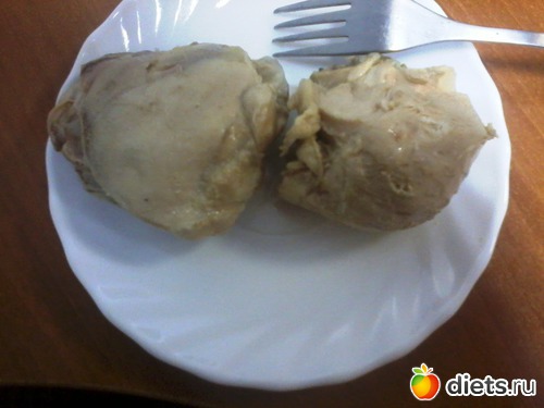 Перекус: Пара кусочков отварной курицы (курогрудка и бедрышко)