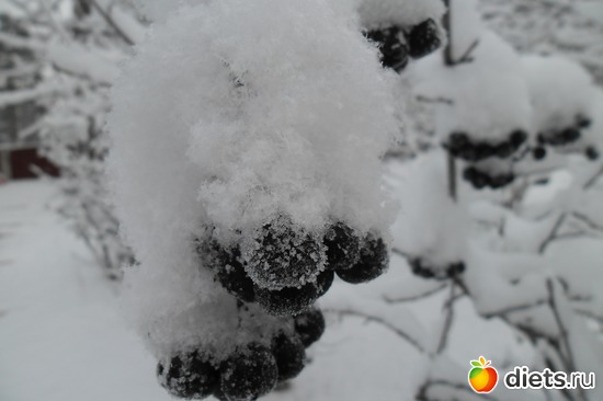 А у нас зима вернулась. Вот как завалило, это я куст с прошлогодней черноплодкой сфоткала, а ведь уже трава молоденькая появилась. Обещают до -13.
