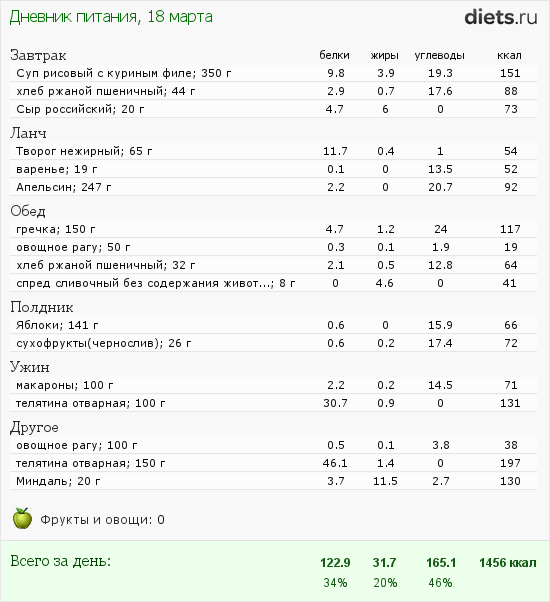 какое у тебя крутое питание!! идеальное!! кстати, у меня бжу примерно такое же получается )