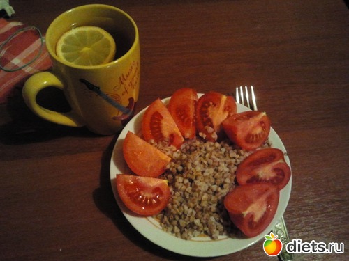 Ужин - гречка+2 помидора+чай с лимоном