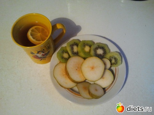 Завтрак - груша+киви+чай с лимоном