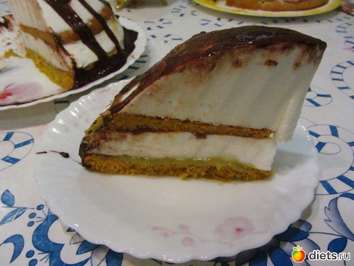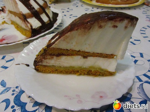 торт получается весом приблизительно килограмм в нем 2 допа по нормам можно слопать за раз целый торт без проблем для фигуры - но увы столько не влазит.