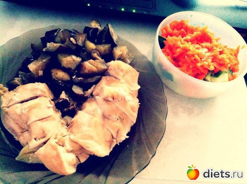 Понимаю...можете ругать за сладости и большой ужин, но хочу оправдаться...сладости после обеда не ела, а буквально вчера на ужин были печеньки, я стараюсь сдерживаться, а на счет ужина, ну да...большой...но в баклажане на 100 грамм 20ккал, в грудке тоже впринцепи не так много, а банан был прям вот специально, что бы не съесть печеньки, все таки сладенький))) простите меня мои хорошие